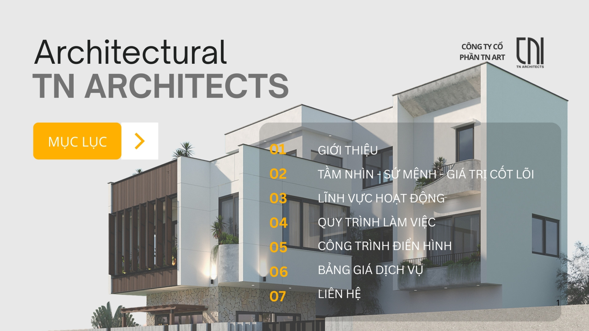 TN Architects luôn nỗ lực không ngừng để tạo ra những công trình mang giá trị bền vững, kết hợp hài hòa giữa thẩm mỹ và tính thực tiễn. Chúng tôi tin rằng mỗi thiết kế là một câu chuyện, phản ánh rõ nét phong cách sống, văn hóa và khát vọng của con người. Với đội ngũ kiến trúc sư giàu kinh nghiệm và sáng tạo, TN Architects cam kết đồng hành cùng khách hàng để biến ý tưởng thành hiện thực, tạo nên những không gian sống và làm việc vừa độc đáo, vừa tối ưu hóa tiện ích, đồng thời hòa quyện với thiên nhiên và môi trường xung quanh.